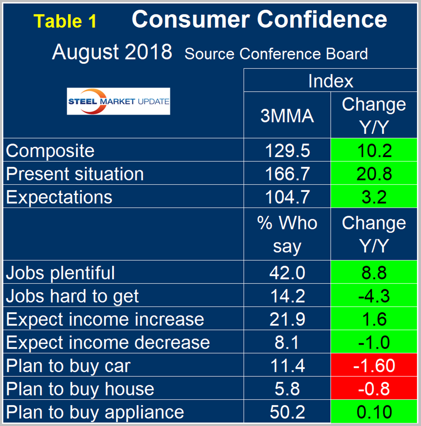 SMU Comment: Steel demand is dependent on the growth of GDP, which in turn is strongly influenced by consumer confidence and disposable income. The current consumer confidence report continues to be good in both these respects.