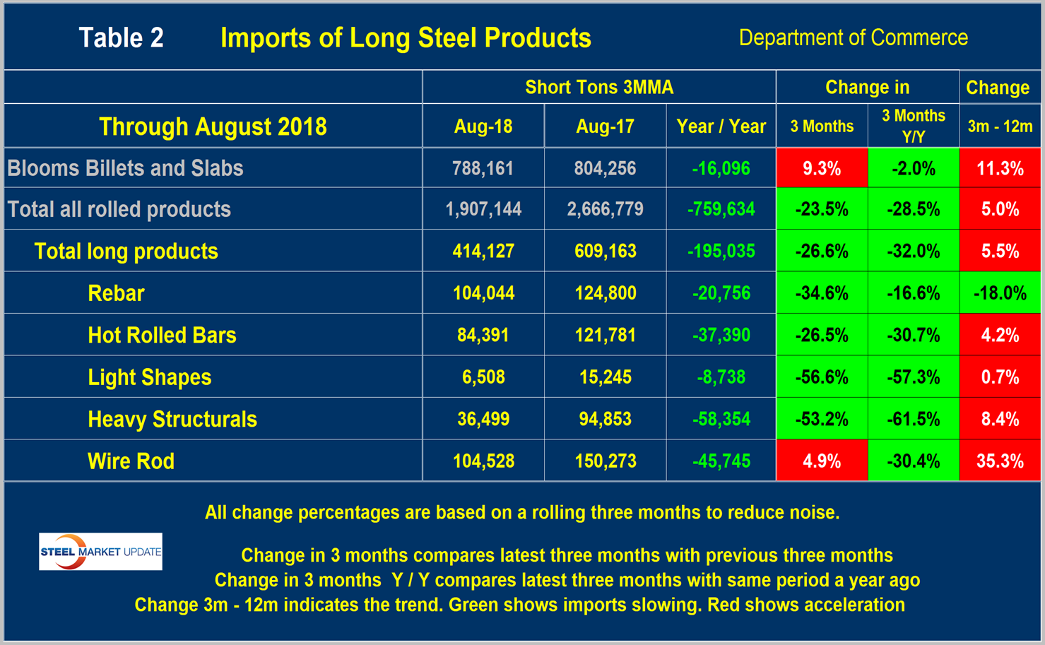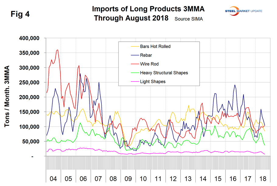 Table 2 shows the same analysis for long products where 3M/3M imports were down by 26.6 percent and down by 32.0 percent year over year. Figure 4 shows the history of long product imports.