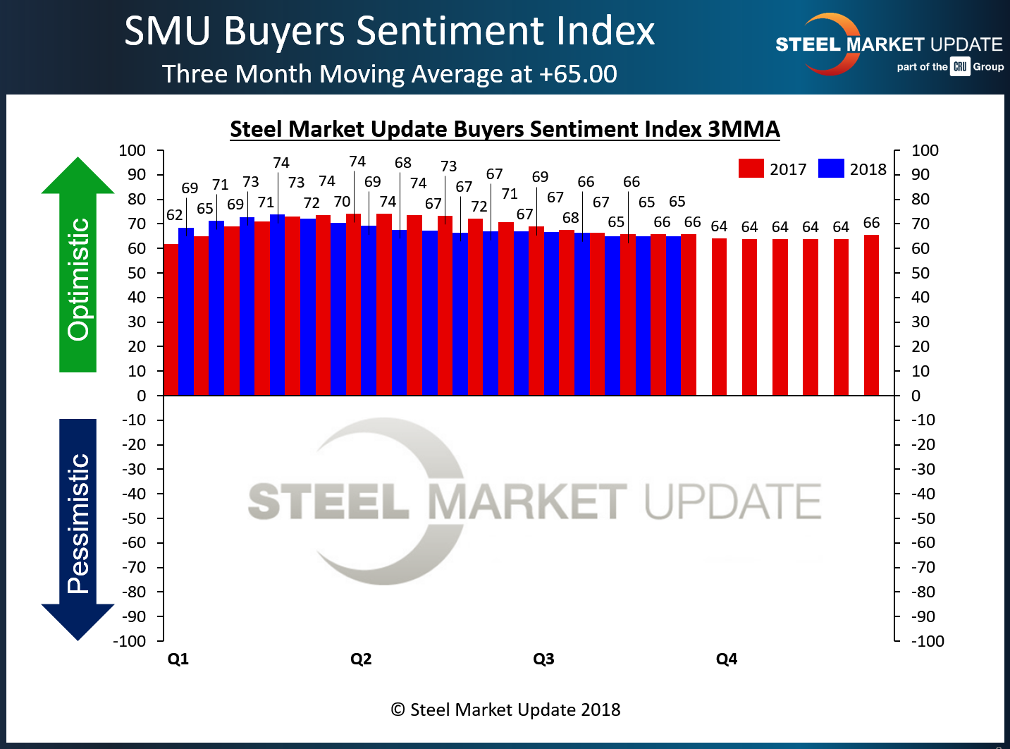 SMU Steel Buyers Sentiment Index is a measurement of the current attitude of buyers and sellers of flat rolled steel products in North America regarding how they feel about their company’s opportunity for success in today’s market. It is a proprietary product developed by Steel Market Update for the North American steel industry.