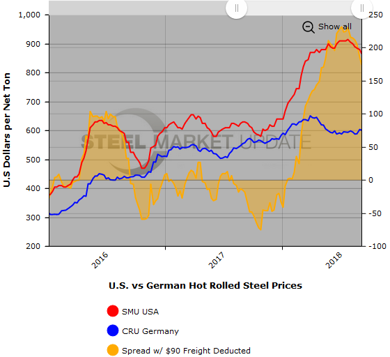 Foreign vs. Domestic HRC Price Spread Shrinking
