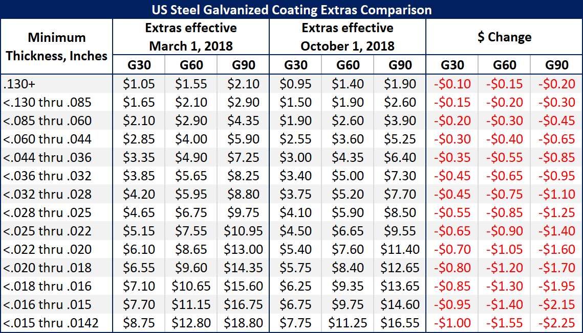 All but one mill have reverted back to the extras being used prior to Jan. 1, 2018. In the table below, we show the difference between the extras being used earlier this year versus the next extras, using U.S. Steel as an example: