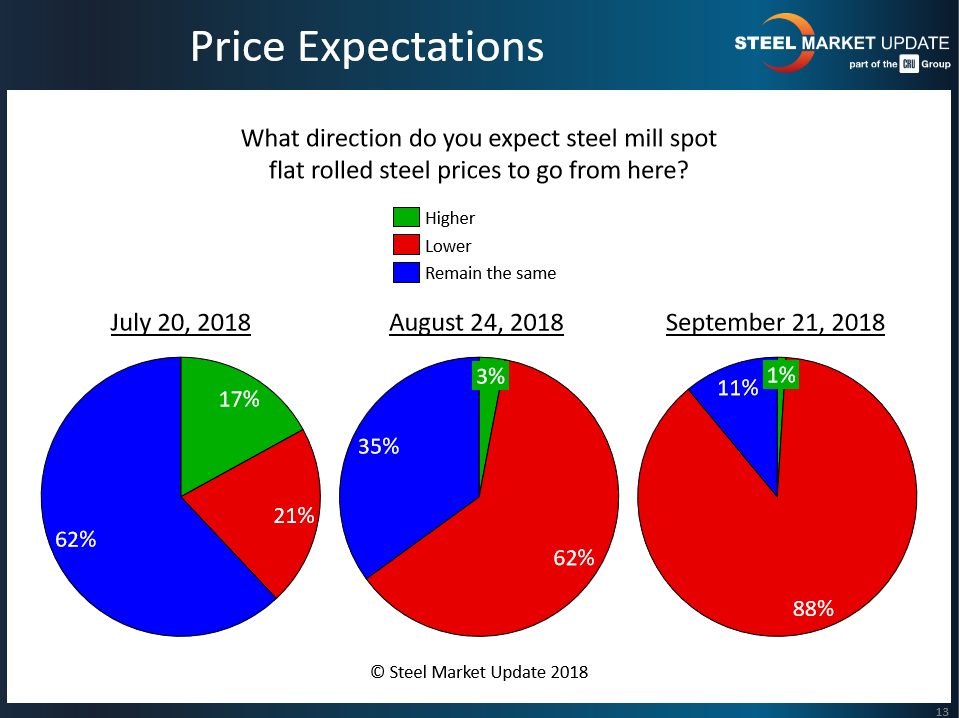 Of course, no one can be certain of the steel price a month from now. As another respondent observed: “Always subject to multiple caveats; a strike at U.S. Steel would be a game changer if it happens.”