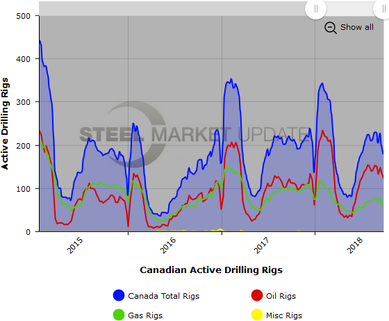 Active Gas & Oil Rig Counts: U.S. Up, Canada Down