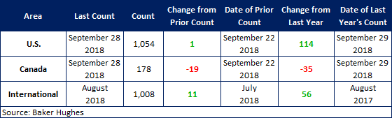 International rigs increased by 11 to 1,008 rigs for the month of August, an increase of 56 rigs from the same month one year ago. For a history of both the U.S. and Canadian rig count, visit the Rig Count page on the Steel Market Update website here.