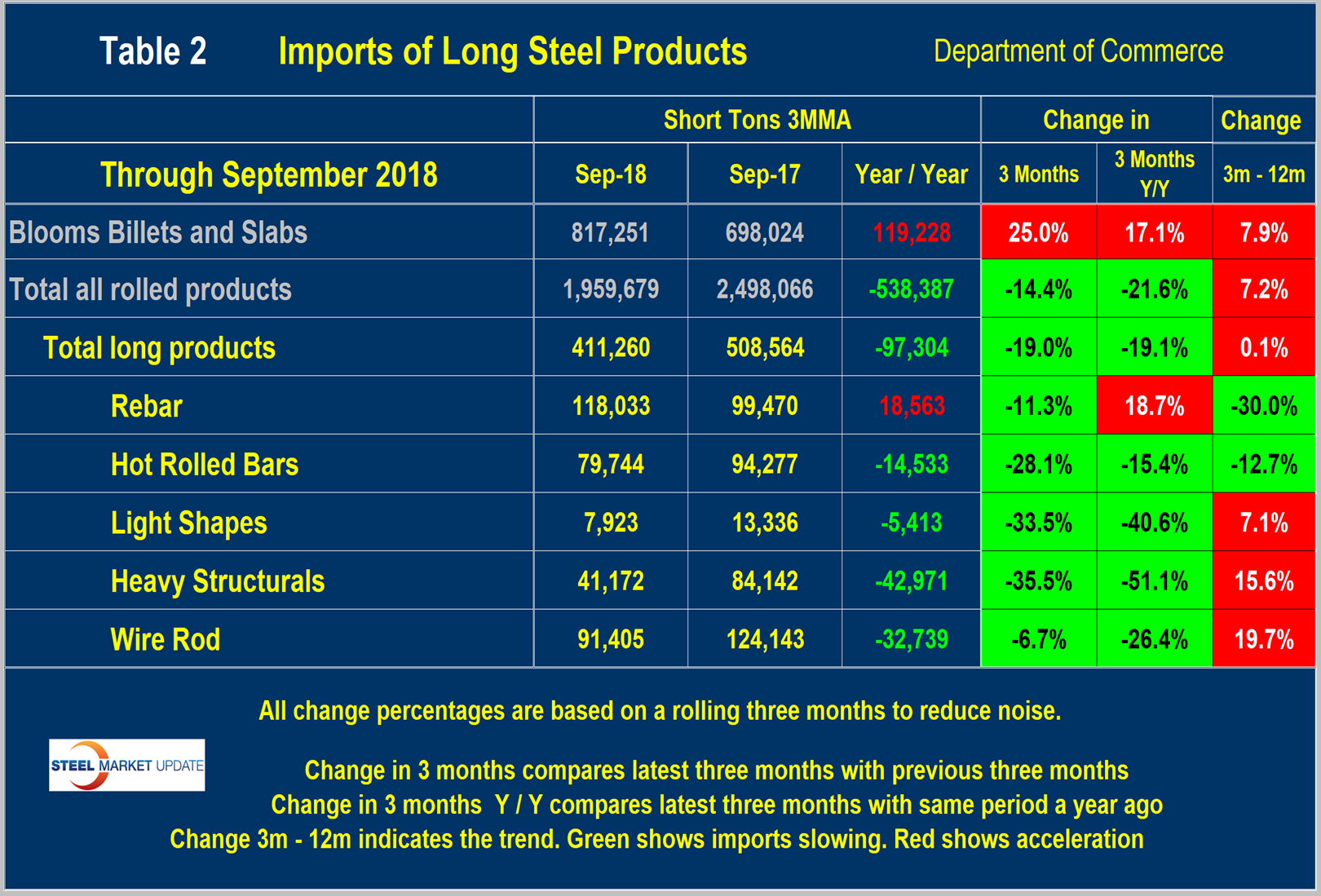 Table 2 shows the same analysis for long products where 3M/3M imports were down by 19.0 percent and down by 19.1 percent year over year. Figure 4 shows the history of long product imports.
