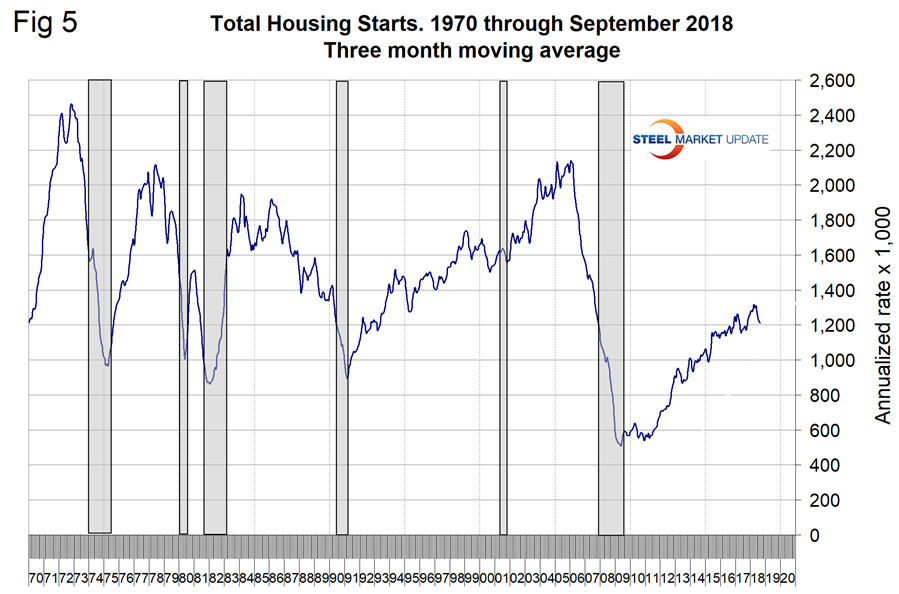 A decline in housing starts has led every recession since 1970. This seems to be a very prescient indicator. At present there is evidence of slowing, but no sustained decline (Figure 5).