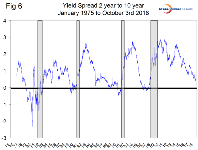 Once every three months, the Steel Market Update staff tries to gain insight into the timing of the next recession. Economists consider recessions to be a necessary evil to clear out distortions that have arisen in the economy. Viewed individually, the leading indicators that we track offer limited insight into future economic expansion or contraction. Viewed collectively, they give subscribers a better idea of present and future business activity. Since World War II, most recessions have been preceded by an overheated economy as indicated by low unemployment, tighter monetary policy and rising long-term interest rates.