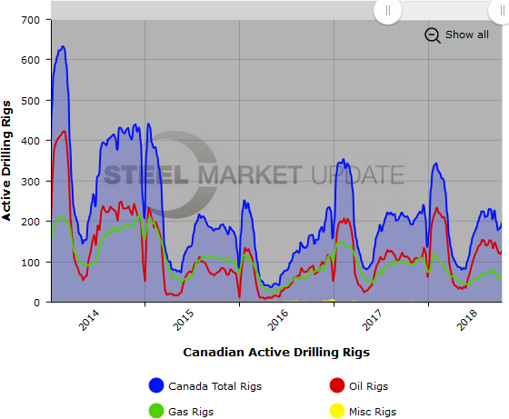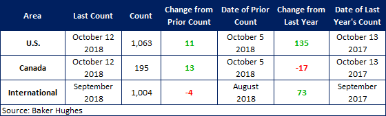 International rigs decreased by 4 to 1,004 rigs for the month of September, an increase of 73 rigs from the same month one year ago. For a history of both the U.S. and Canadian rig count, visit the Rig Count page on the Steel Market Update website here.
