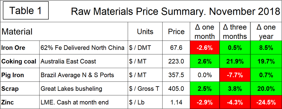 Raw Material Prices: Iron Ore, Coking Coal, Pig Iron, Scrap and Zinc