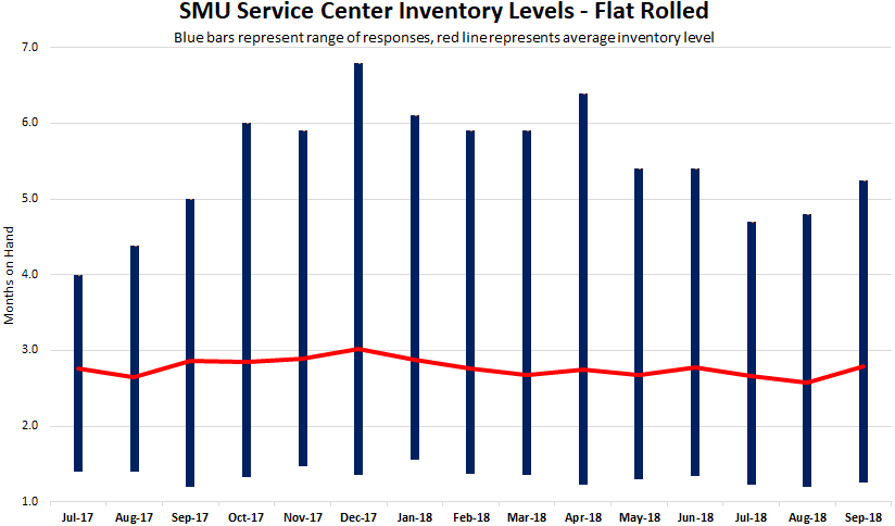 “The only reason our inventory months are up is due to having only 19 shipping days in September. Based on the higher tons per day rates we are seeing, we expect inventories to fall well under 2 months for both products by end of October (23 days). Shorter lead times clearly allow for leaner inventory. However, there are a number of large planned outages to consider. Additionally, we appear to be approaching another transitional point in the market. The rate of price declines has slowed or even stopped. With scrap now increasing and import levels expected to decline in Q4, a price increase followed by and extension of lead times seems inevitable… [written prior to the Nucor announcement].”