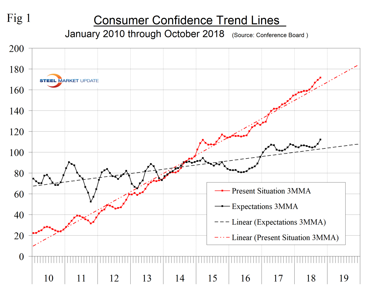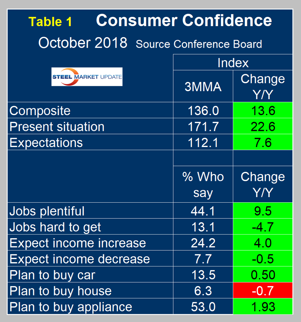 SMU Comment: Steel demand is dependent on the growth of GDP, which in turn is strongly influenced by consumer confidence and disposable income. The current consumer confidence report continues to be good in both these respects.