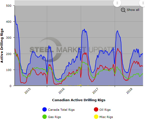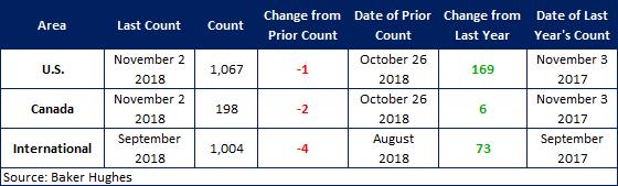 International rigs decreased by 4 to 1,004 rigs for the month of September, an increase of 73 rigs from the same month one year ago. For a history of both the U.S. and Canadian rig count, visit the Rig Count page on the Steel Market Update website here.