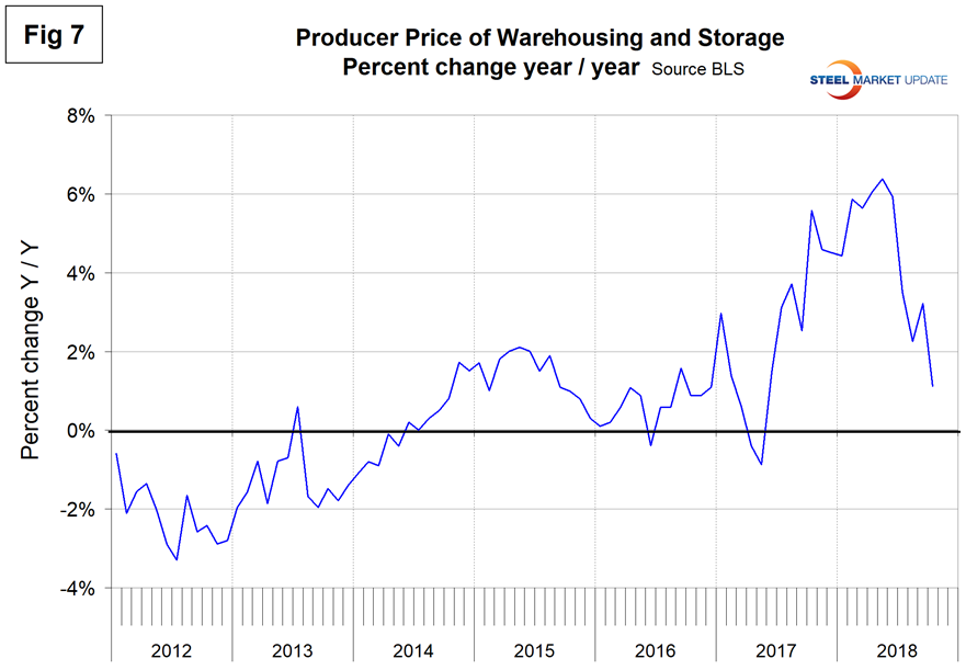 Figure 7 shows that the cost of warehousing and storage has declined significantly this year.