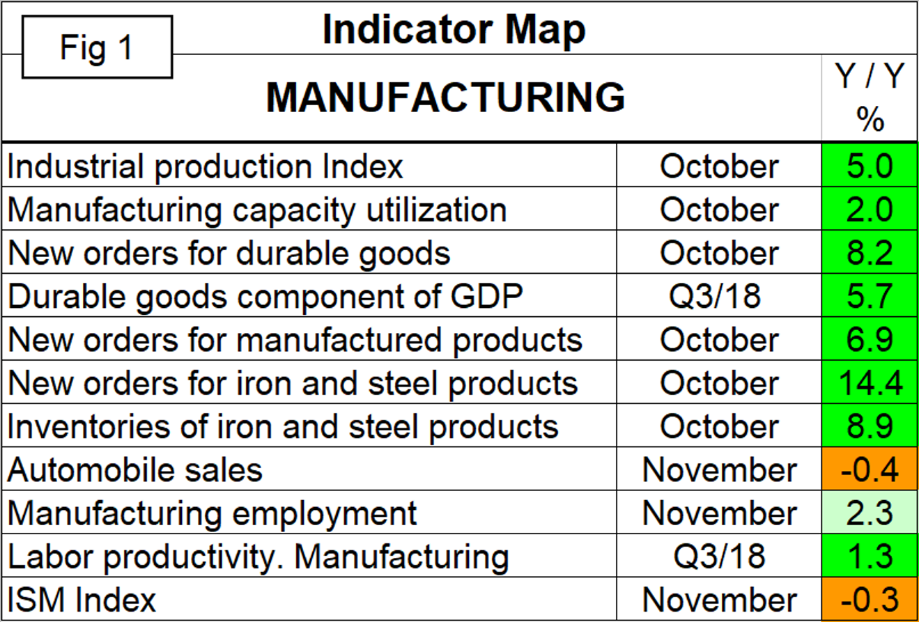 Figure 1 summarizes the 11 individual data streams. All indicators except automobile sales and the ISM Index have positive growth on a year-over-year basis. However, growth rates of some indicators are slowing.