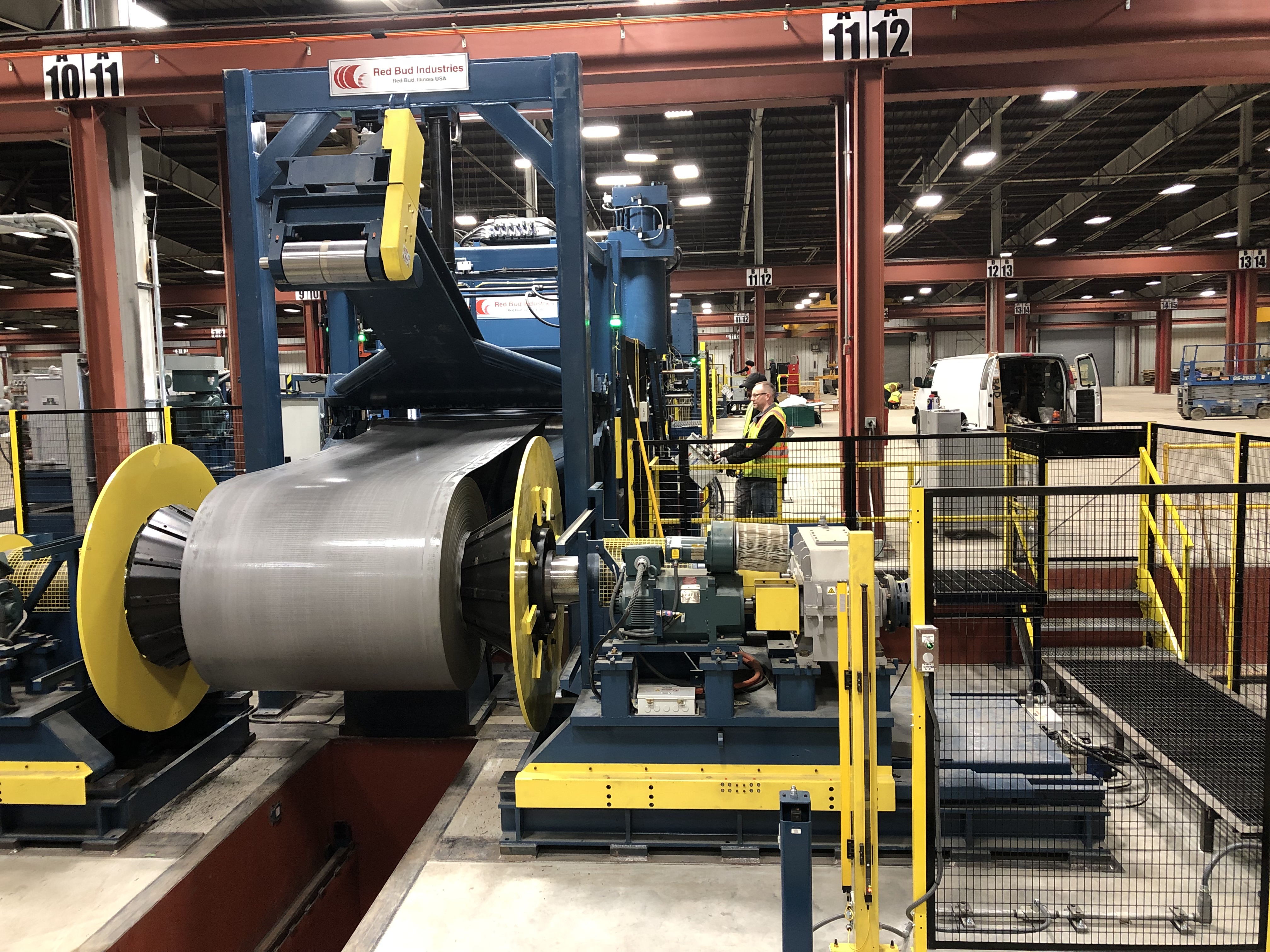 The line was installed by Red Bud Industries in a 150,000-square-foot building the company bought last year. It is capable of leveling and cutting material from 48 up to 74 inches wide, from 16-gauge up to 5/8th-inch thick. The line has a capacity of about 20,000 tons a month. The company hopes to process 100,000 tons in the line’s first year of operation. The facility will stock coils from commercial quality through grade 55 in both hot rolled and pickled and oiled.