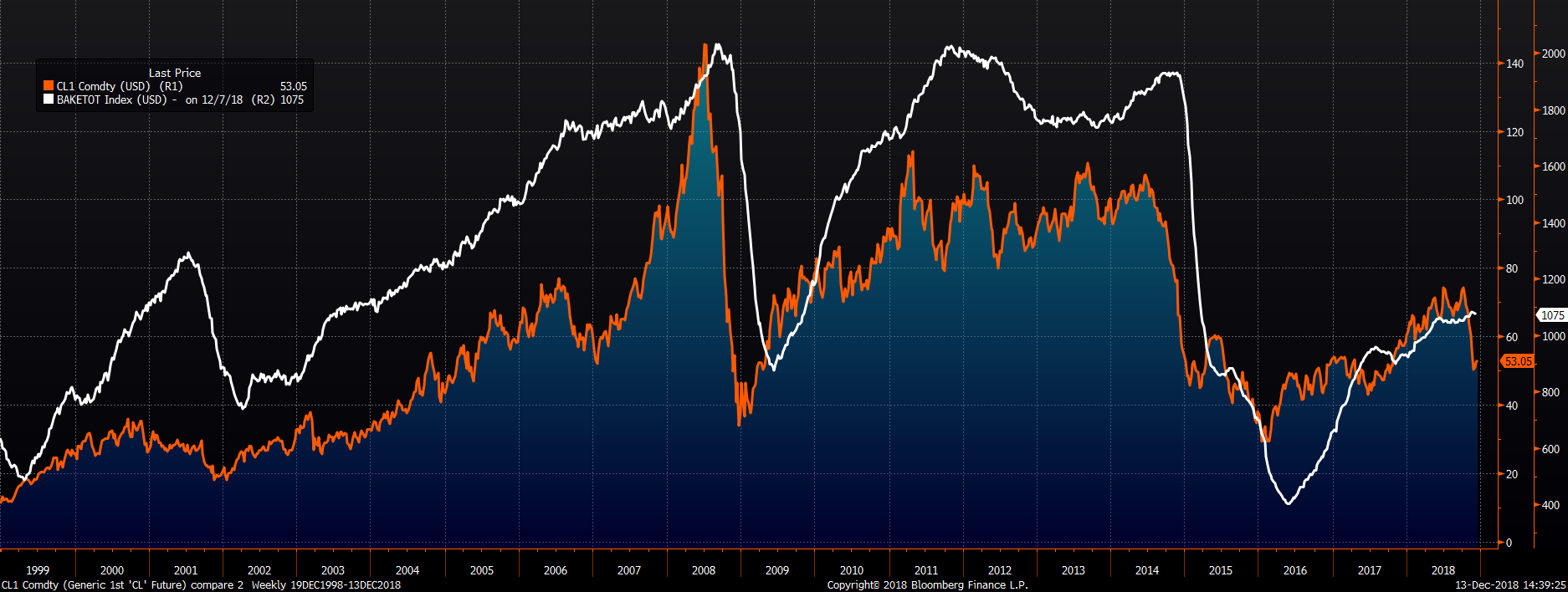 Front Month CME WTI Crude Oil Future & Baker Hughes U.S. Rig Count