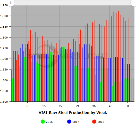 U.S. steelmakers have produced 6.0 percent more raw steel so far this year. Adjusted year-to-date production through Dec. 15 totaled 91,294,000 net tons. The average capacity utilization rate for the year has increased by more than 4 percentage points, to 78.2 percent from 74.0 percent in 2017.