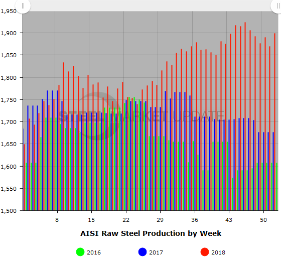 Cranking out steel at more than 80 percent of capacity late in the year, U.S. mills produced over 95 million tons of raw steel in 2018, 6.2 percent more than the prior year, according to weekly production data from the American Iron and Steel Institute. The average capacity utilization rate for the year increased by more than 4 percentage points to 78.3 percent from 74.0 percent in 2017.