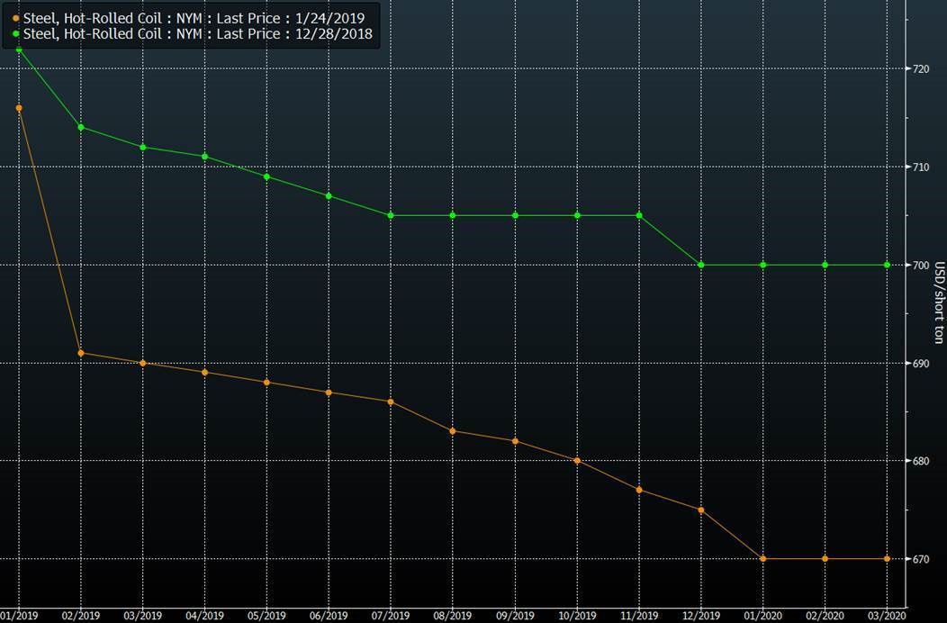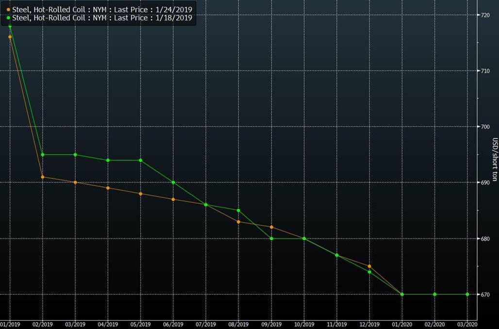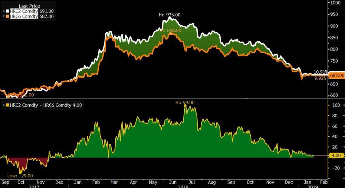 Calendar spreads are useful when traders are looking to adjust their positions. Trading calendar spreads also comes in handy when traders expect one period to outperform another period of the year. Seeing an increase in spread trades is not surprising after you see a big move like the one in the last month. HRC Forward curve from end of December (Green) made a big move down in one month as U.S. spot prices weakened.