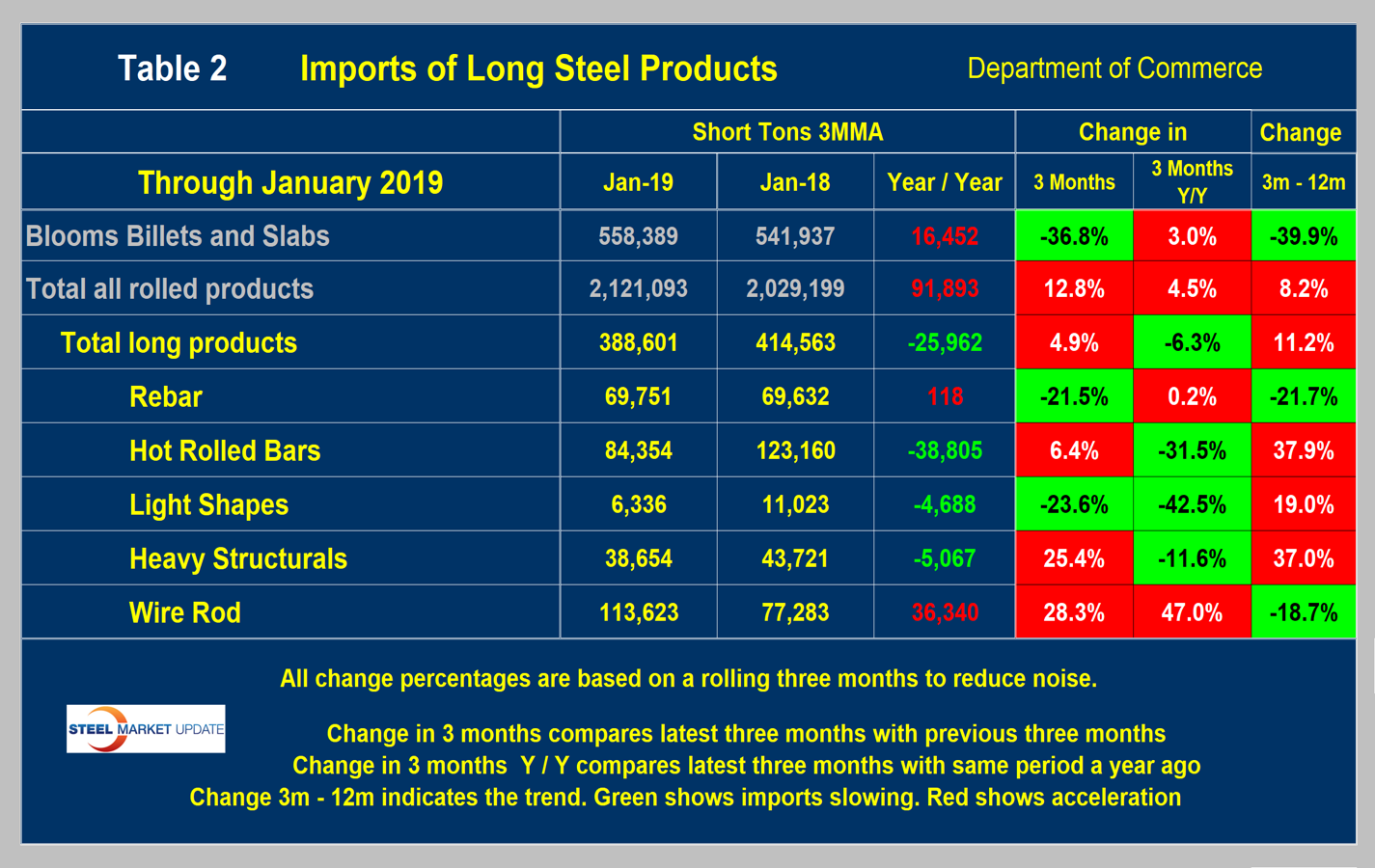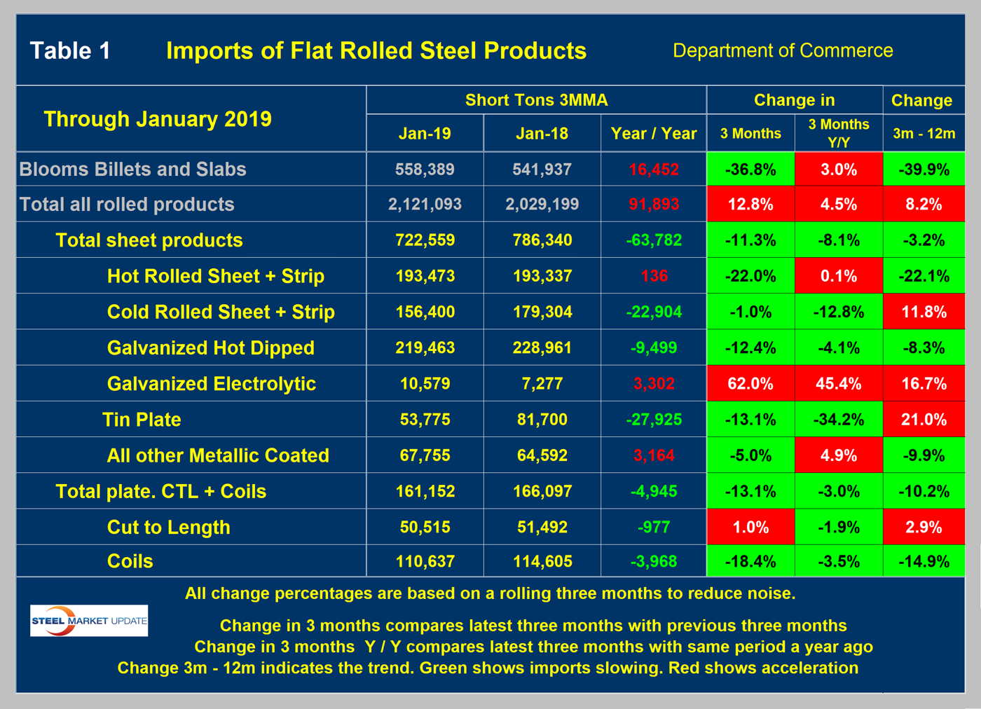Rolled product imports increased by 4.5 percent in January, calculated as a three-month moving average (3MMA) year over year.