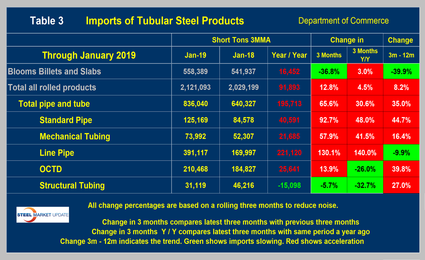 Figure 2 summarizes the import volume of flat rolled, tubular and long products since 2004 on a 3MMA basis. Sheet and longs have experienced an 18-month decline, but tubular goods surged in December and January.