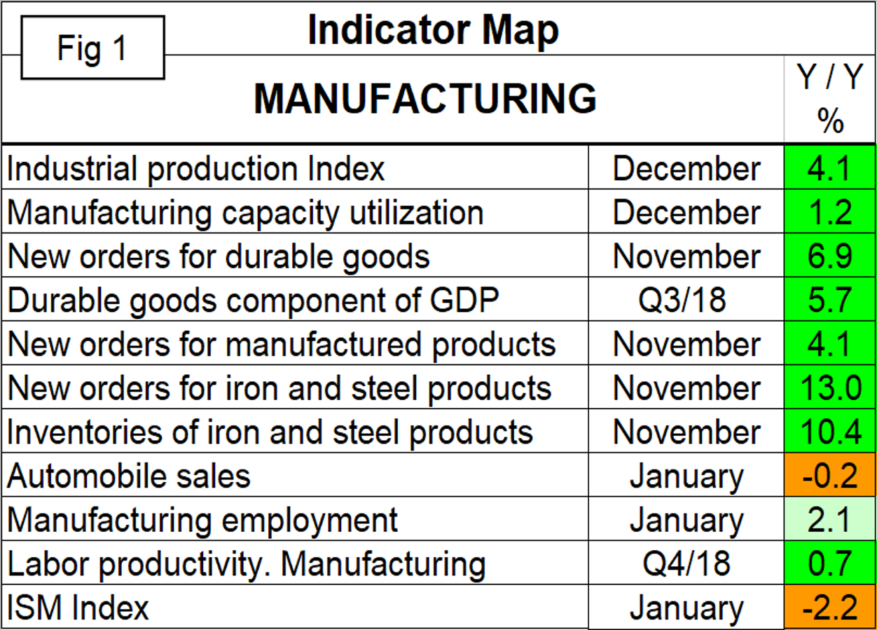 SMU Comment: Manufacturing activity is still strong though there is evidence of the growth rate slowing. The most encouraging current data point is the improvement in labor productivity in the third and fourth quarters of 2018. These were the best back-to-back quarters since mid-2013. Automobile sales have been drifting down from an unsustainable level in late 2015 when they reached an annualized rate of over 18 million units. We should keep our eye on the ISM index, which though still strong is slightly negative year over year for the first time since August 2016.