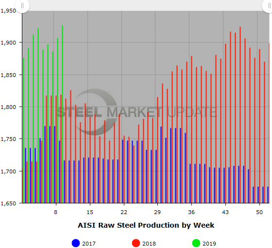 Weekly Raw Steel Production Rate Rises to 10+ Year High