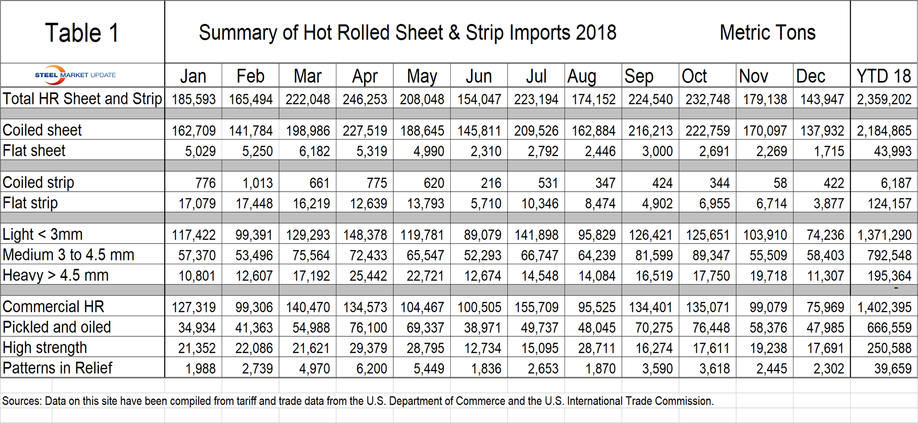 Using U.S. International Trade Commission (USITC) data, SMU has taken the import tonnage of HRC and broken it down into sheet and strip, and whether it was in coil or leveled. Then it separates three gauge ranges, it identifies how much was P&O, how much was high strength and how much had patterns in relief.