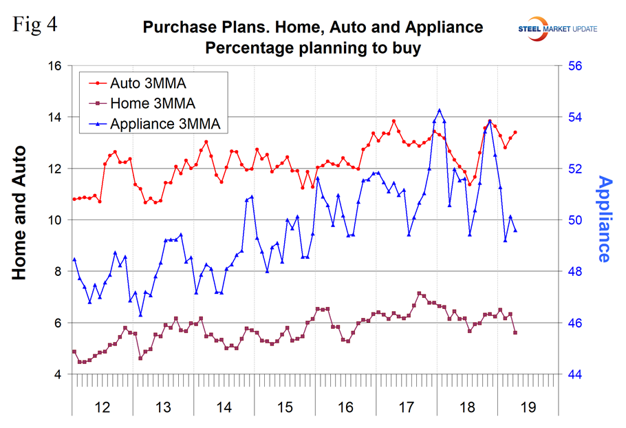SMU Comment: The Conference Board Consumer Confidence Index is a volatile measure if the state of the economy, but basically is saying there’s not much change year over year. On a 3MMA basis, both the present and expectations components have fallen below their long-term trend line for the first time in two years, though both are historically high. Steel demand is dependent on the growth of GDP, which in turn is strongly influenced by consumer confidence, disposable income and a willingness to spend.