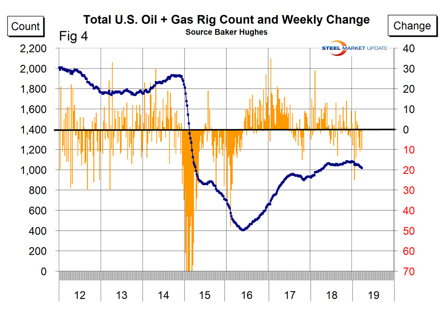 The prices of oil and natural gas drive the consumption of energy-related steel products including oil country tubular goods, pipe fittings and well head equipment, among others. Welded tubular goods (not including OCTG) consumed about 5.5 million tons of hot rolled sheet in 2018.