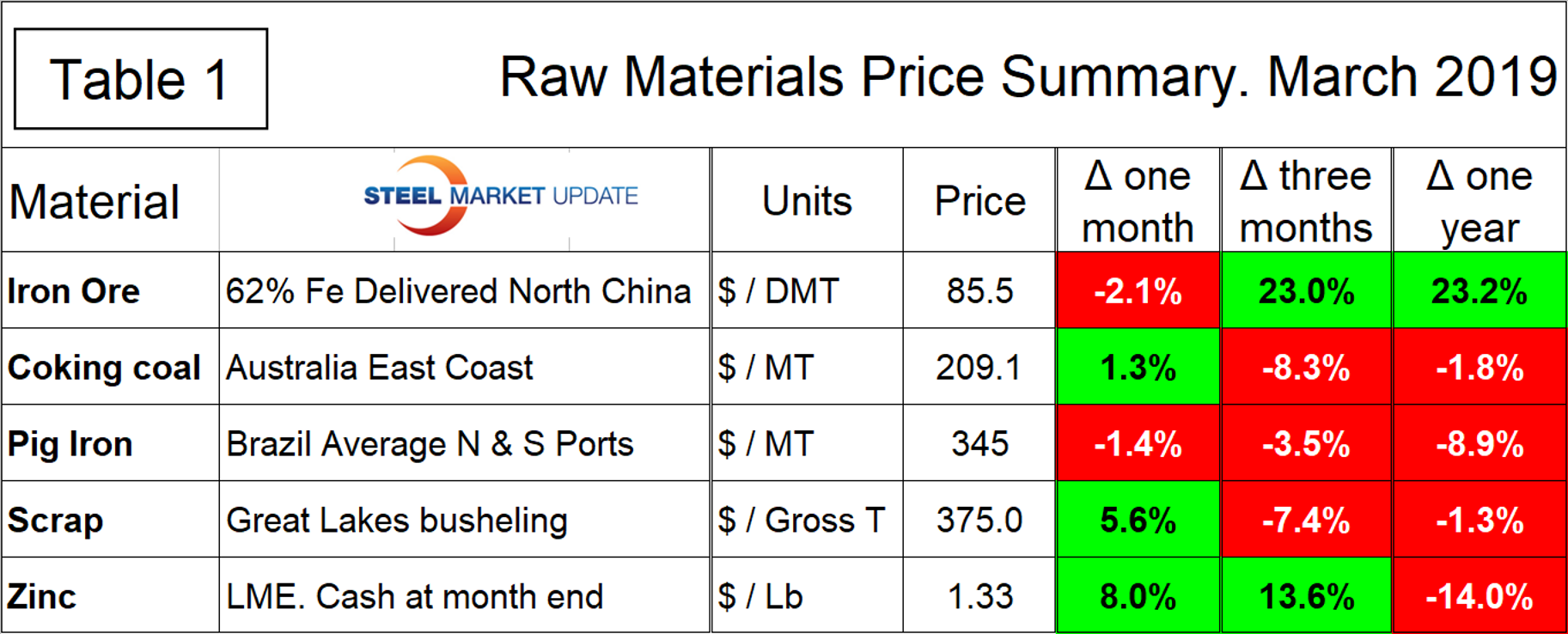 Raw Material Prices: Iron Ore, Coking Coal, Pig Iron, Scrap and Zinc