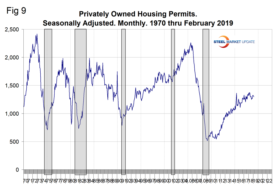 A decline in housing permits and starts has led every recession since 1970. This seems to be a very prescient indicator. At present there is evidence of slowing, but no sustained decline. On a year-over-year basis, growth still looks good, but in the shorter term a slowdown is beginning to appear (Figure 9).