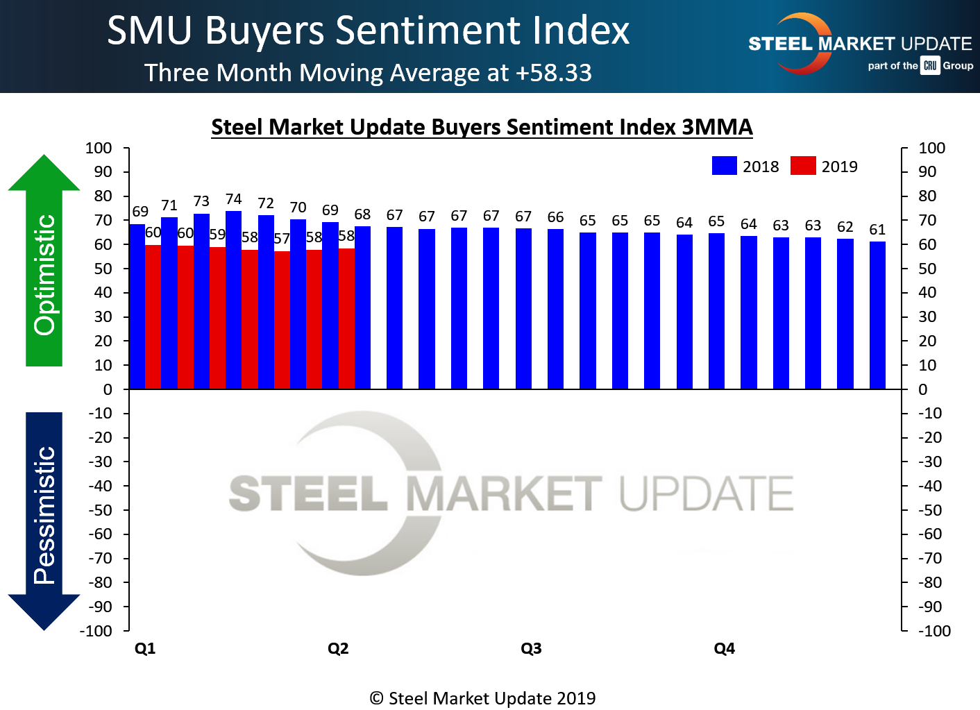 SMU Steel Buyers Sentiment Index is a measurement of the current attitude of buyers and sellers of flat rolled steel products in North America regarding how they feel about their company’s opportunity for success in today’s market. It is a proprietary product developed by Steel Market Update for the North American steel industry.