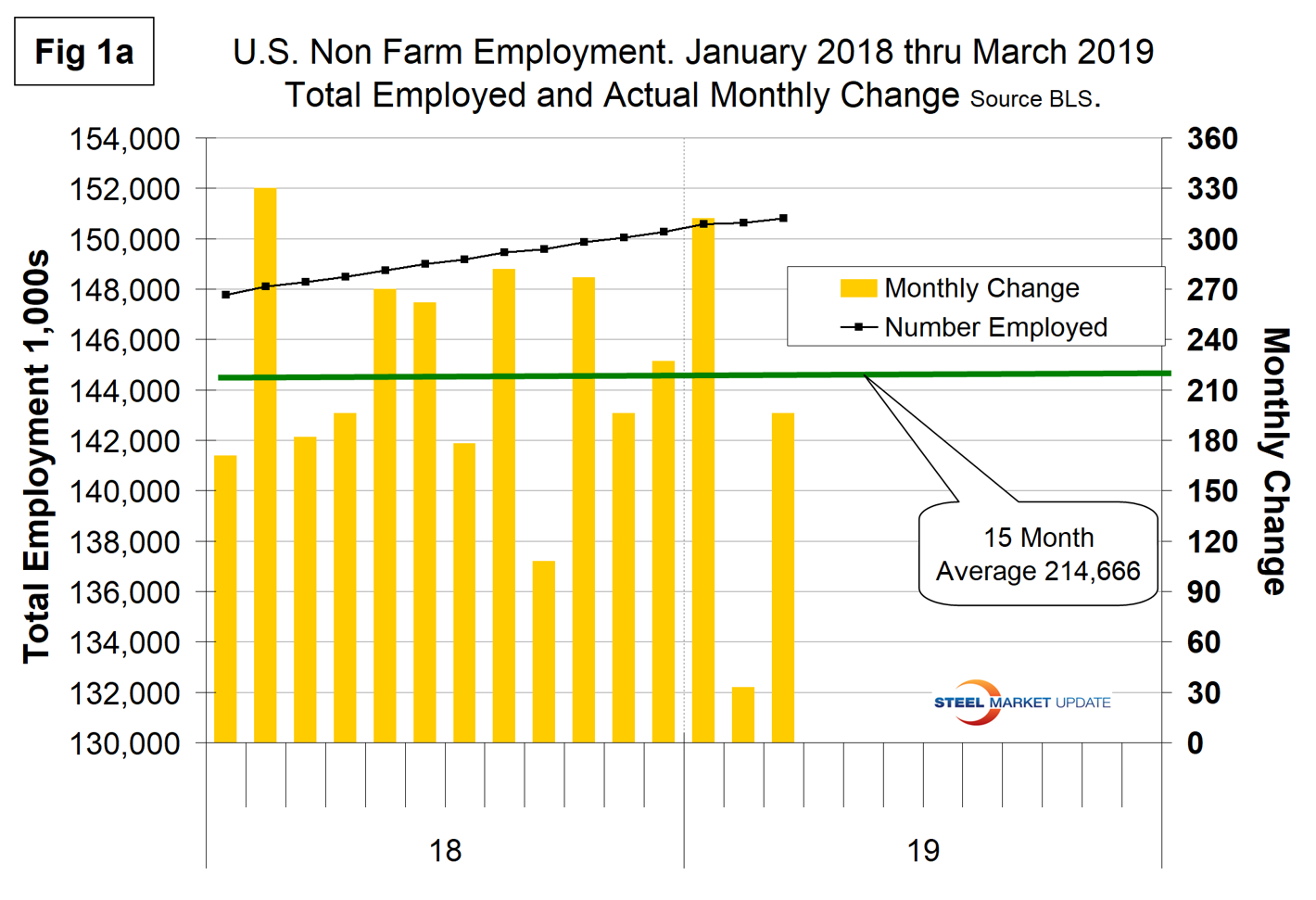 SMU Comment: Another excellent employment report showing the dismal February result to be a statistical blip. Job openings continue to be very high, new unemployment claims are very low and there are less discouraged people who can’t find a job. Rising employment is a factor in total consumer spending, which is a driver of both GDP and steel consumption.