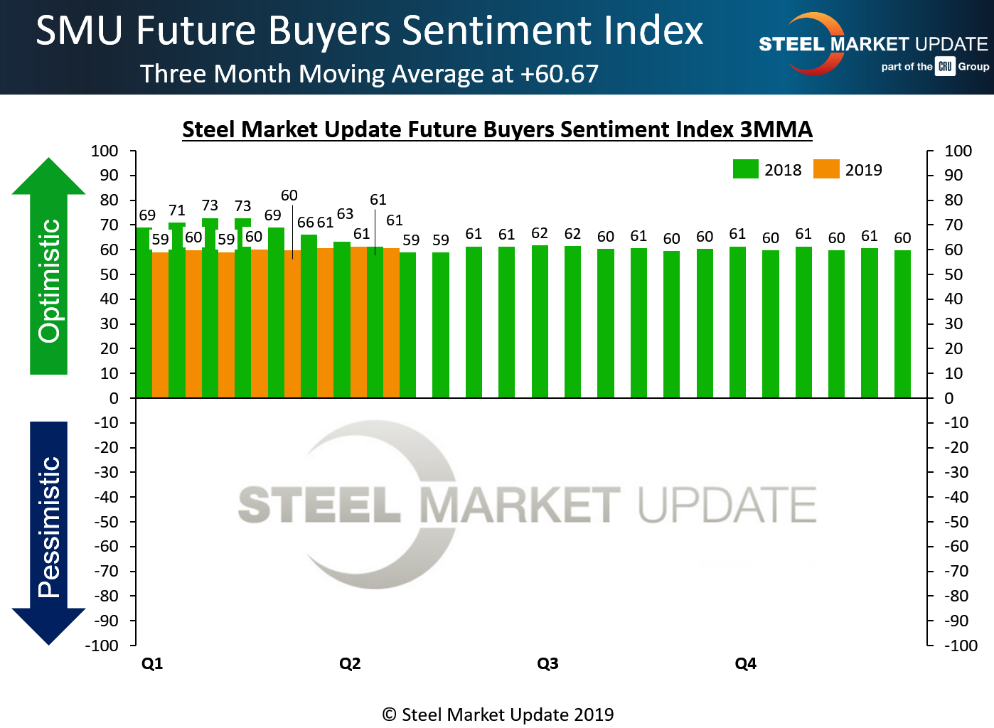 SMU Steel Buyers Sentiment Index is a measurement of the current attitude of buyers and sellers of flat rolled steel products in North America regarding how they feel about their company’s opportunity for success in today’s market. It is a proprietary product developed by Steel Market Update for the North American steel industry.