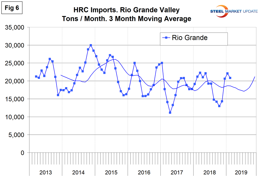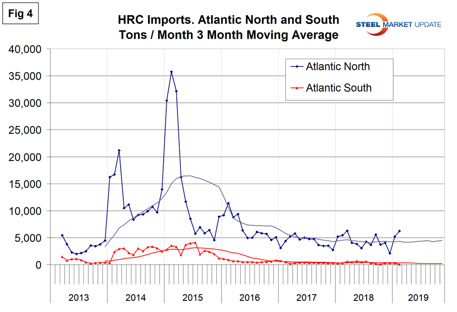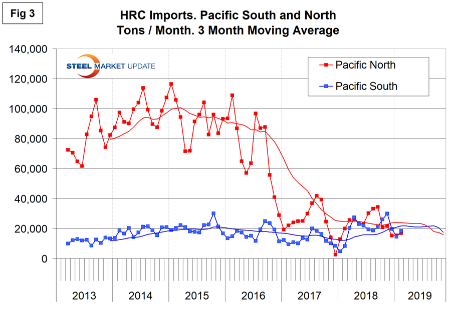 Figures 3, 4, 5 and 6 show the history of HRC coil imports by region since March 2013 on a three-month moving average basis.