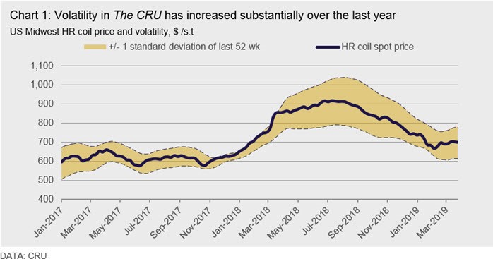 U.S. Midwest HR coil price volatility has increased markedly in recent months as opaque policy decision-making processes and inelasticity of domestic supply have led to large variations in physical market price.