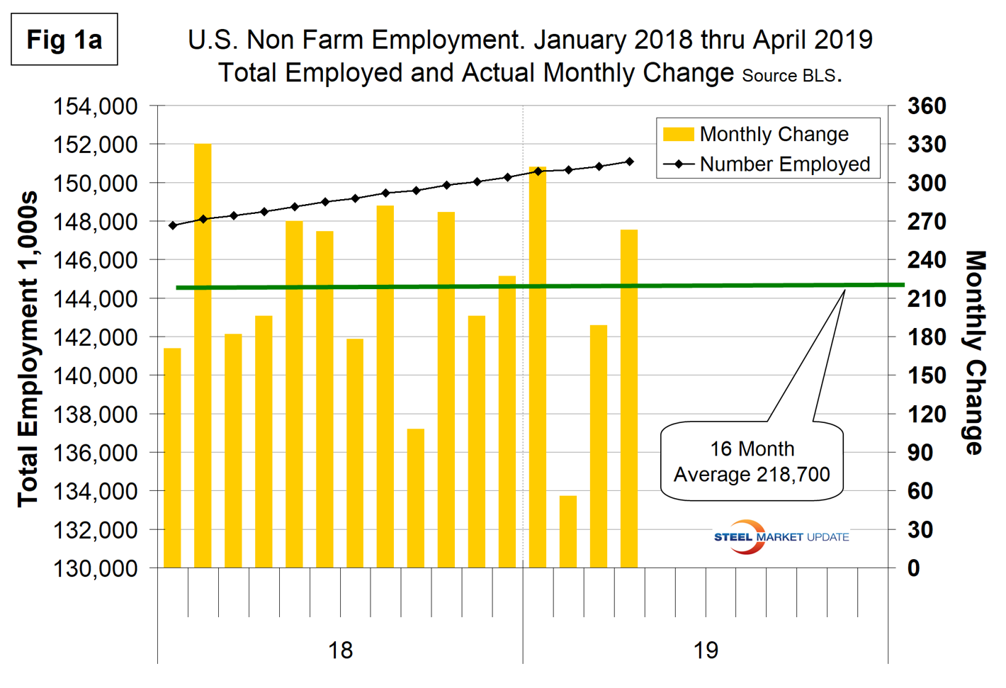 Explanation: On the first Friday of each month, the Bureau of Labor Statistics releases the employment data for the previous month. Data is available at www.bls.gov. The BLS reports on the results of two surveys. The Establishment survey reports the actual number employed by industry. The Household survey reports on the unemployment rate, participation rate, earnings, average workweek, the breakout into full-time and part-time workers and lots more details describing the age breakdown of the unemployed, reasons for and duration of unemployment. At Steel Market Update, we track the job creation numbers by many different categories. The BLS database is a reality check for other economic data streams such as manufacturing and construction. We include the net job creation figures for those two sectors in our “Key Indicators” report. It is easy to drill down into the BLS database to obtain employment data for many subsectors of the economy. For example, among hundreds of sub-indexes are truck transportation, auto production and primary metals production. The important point about all these data streams is the direction in which they are headed. Whenever possible, we try to track three separate data sources for a given steel-related sector of the economy. We believe this gives a reasonable picture of market direction. The BLS data is one of the most important sources of fine-grained economic data that we use in our analyses. The states also collect their own employment numbers independently of the BLS. The compiled state data compares well with the federal data. Every three months, SMU examines the state data and provides a regional report, which indicates strength or weakness on a geographic basis. Reports by individual state can be produced on request.