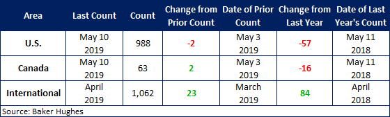 International rigs increased by 23 to 1,062 rigs for the month of April, an increase of 84 rigs from the same month one year ago. For a history of both the U.S. and Canadian rig count, visit the Rig Count page on the Steel Market Update website here.