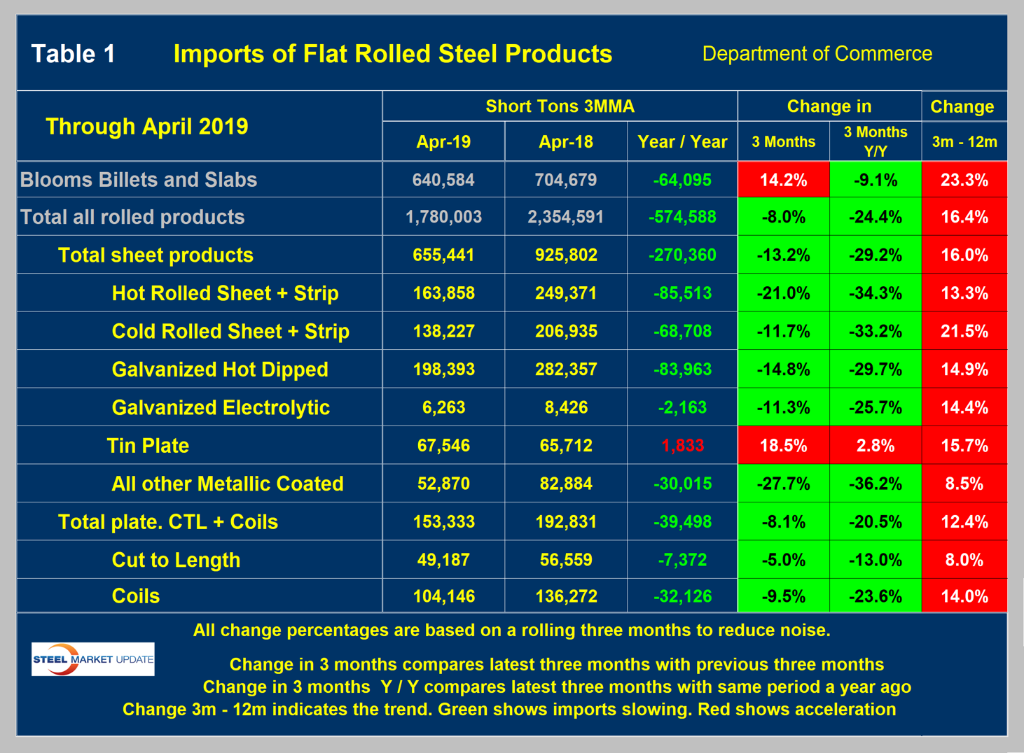 Rolled product imports declined by 24.4 percent in April year over year on a three-month moving average (3MMA) basis.