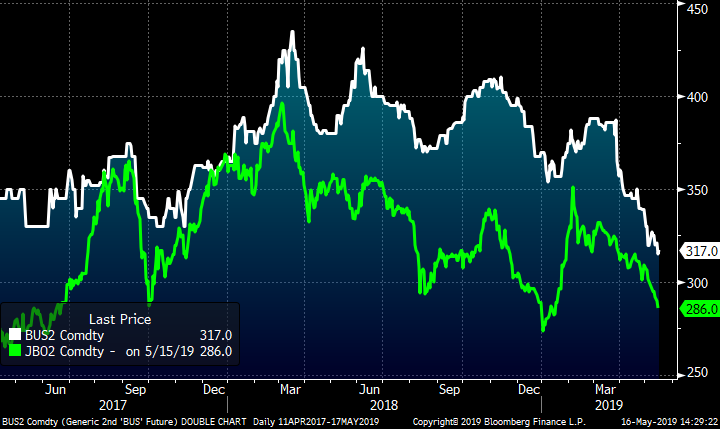 If the steel tariffs placed on Canada and Mexico are officially removed, futures could get hit by another $30-$50 AND then the Bicameral Congressional Trade Authority Act of 2019, which looks to remove all steel tariffs, will start to march forward. These powerful issues are negatively affecting sentiment, creating massive uncertainty and risk aversion.