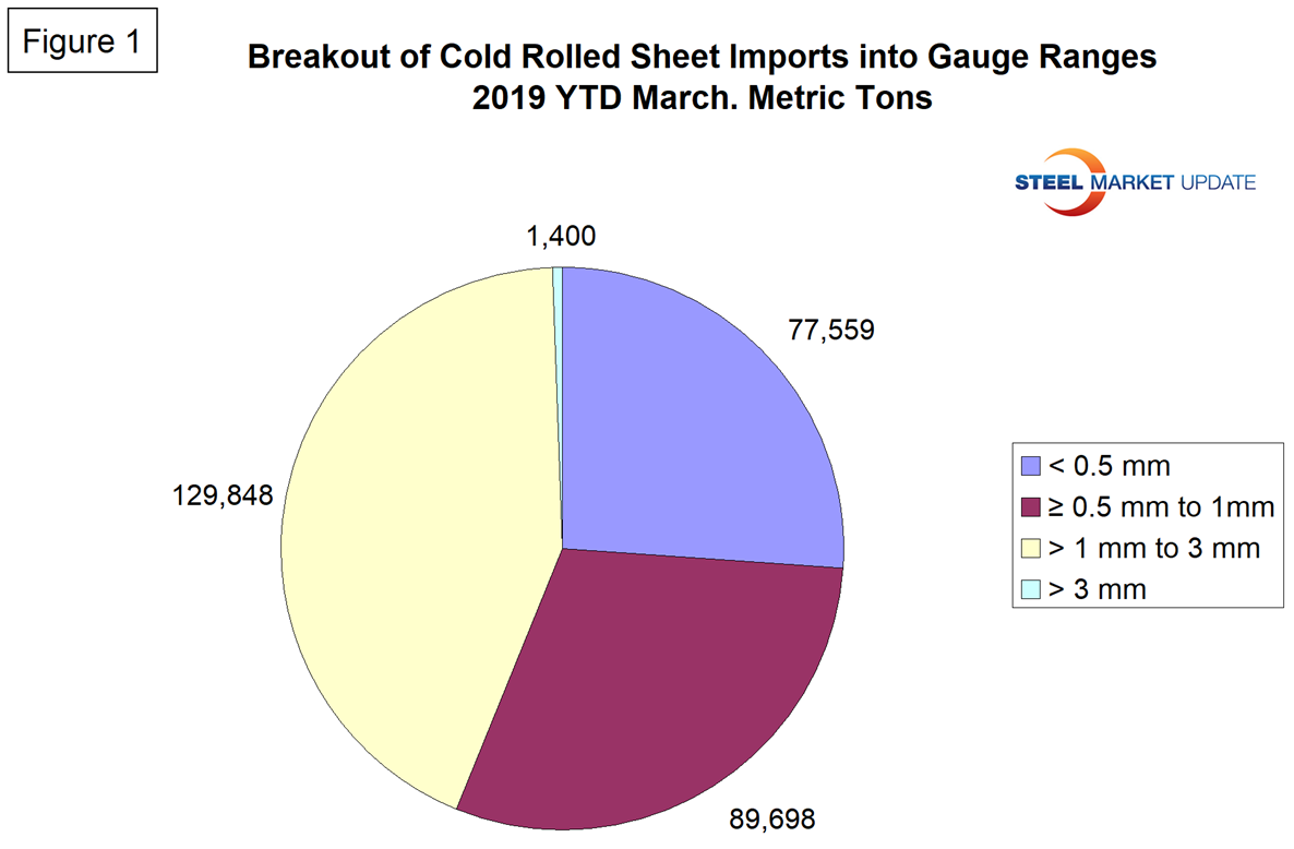 Figure 1 breaks the year-to-date cold rolled sheet tonnage down into the four gauge ranges that are identified in the HTS codes.