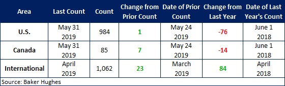 International rigs increased by 23 to 1,062 rigs for the month of April, an increase of 84 rigs from the same month one year ago. For a history of both the U.S. and Canadian rig count, visit the Rig Count page on the Steel Market Update website here.