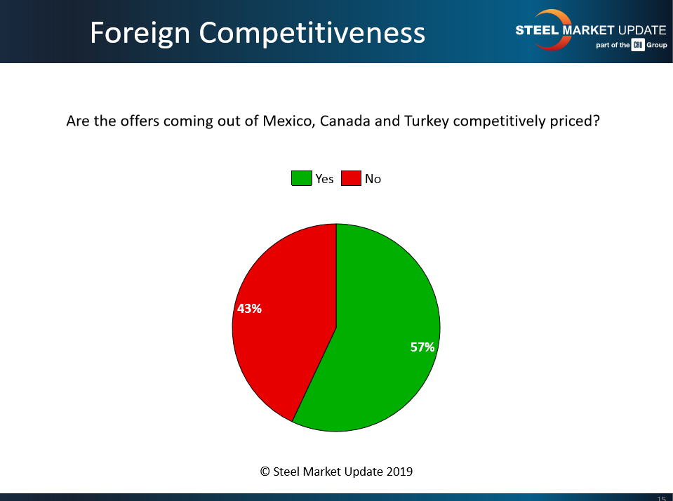 “Turkey is not competitive and they have long lead times versus U.S./Canada/Mexican mills,” said one respondent. “Turkey will struggle for the time being, at least on flat products,” added another.