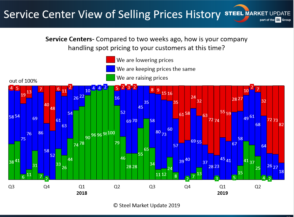 el prices have fallen by about $4.50/cwt in the past eight weeks. Steel Market Update estimates the current market price is running close to $35/cwt, or $700 per ton. “Prices just seem to be in a freefall. We are in pricing territory we have not seen since the fall of 2016,” said one executive on the call.