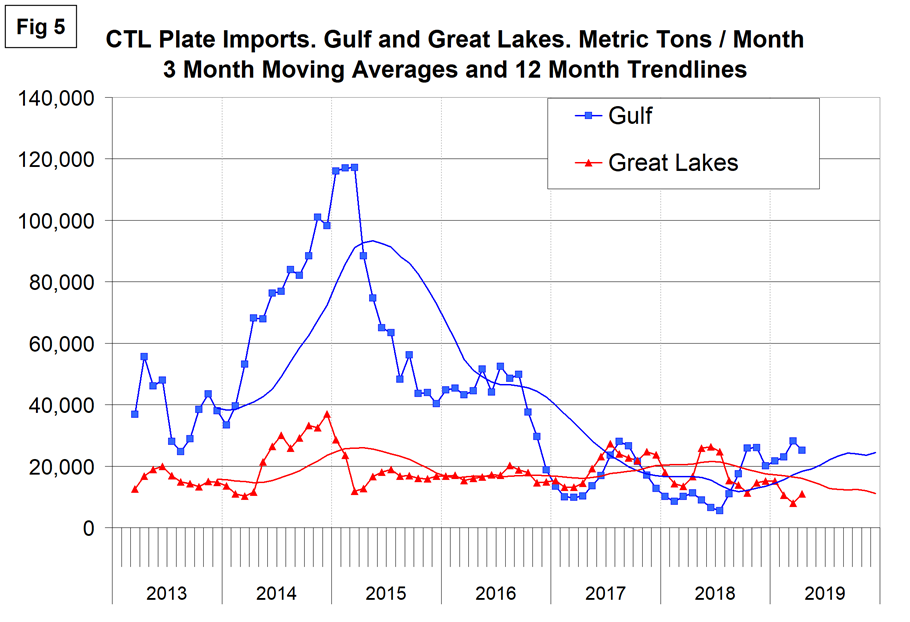 Figures 3, 4, 5 and 6 show the history of CTL plate imports by region since March 2013 on a three-month moving average basis. Note, the Y axis scales are not the same.