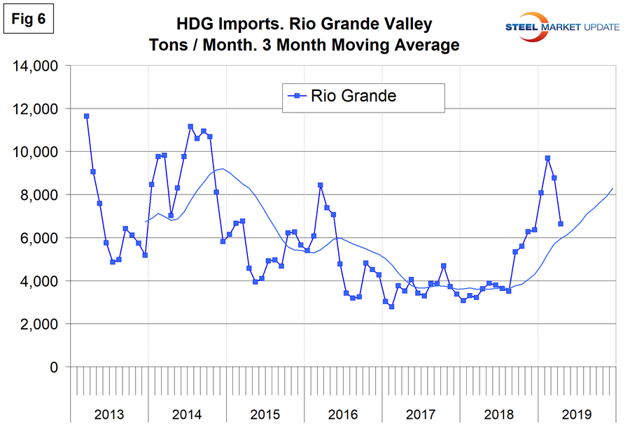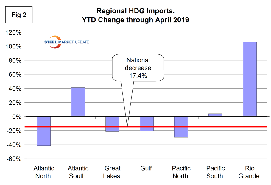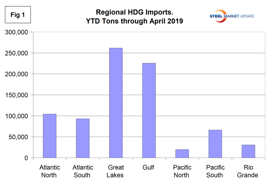 National level import reports do a good job of measuring the overall market pressure caused by the imports of individual products. The downside is that there are huge regional differences. We believe that buyers and sellers should have an understanding of the regional differences. For example, year to date through April, total hot dipped galvanized imports were down by 17.4 percent. The two highest volume regions were the Gulf and the Great Lakes and both were down. The Rio Grande Valley, which has a much smaller tonnage, was up by over 100 percent.