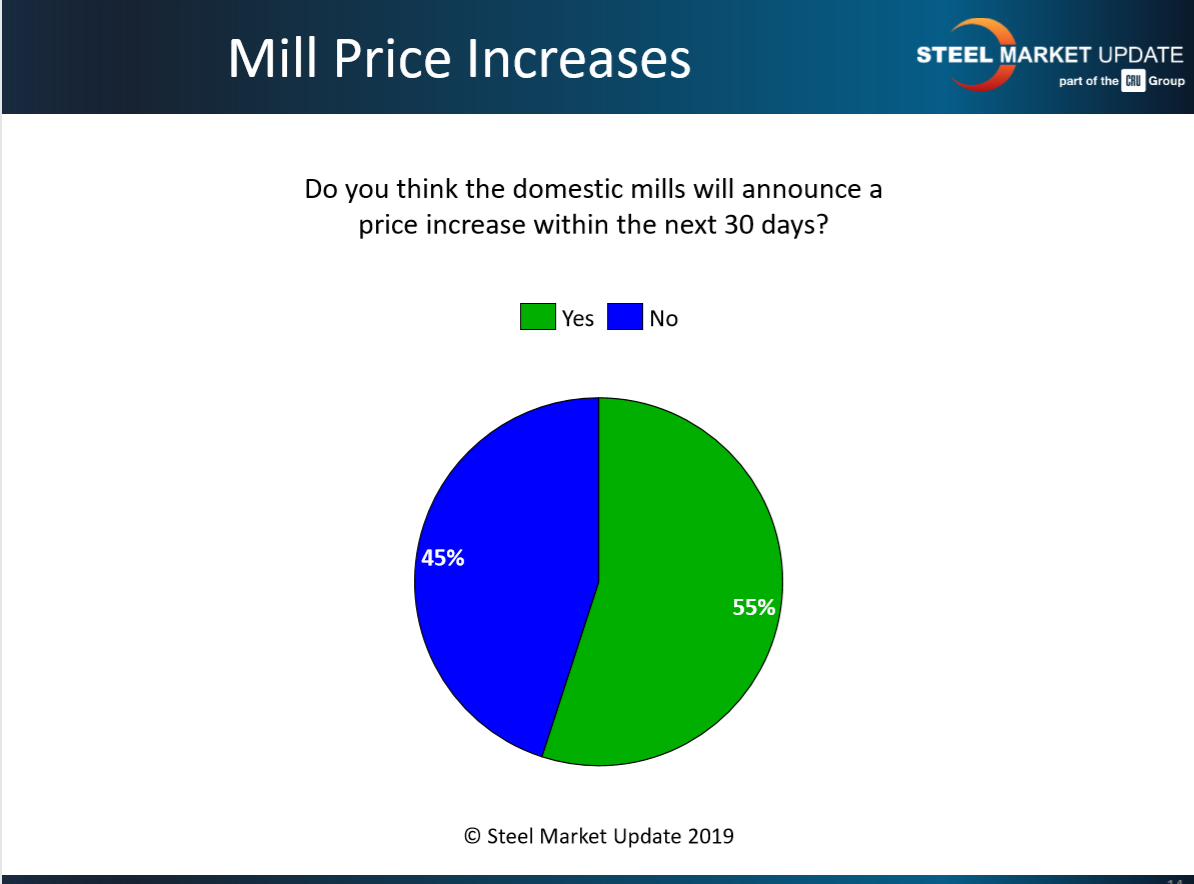 Steel Market Update asked: Do you think domestic mills will announce a price increase within the next 30 days?