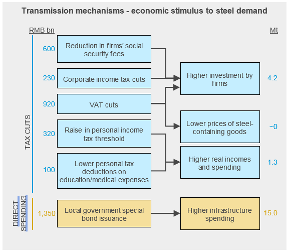 *Total tax cuts include a RMB200 bn reduction in import tariffs on consumer goods. This is assumed not to impact domestic steel demand and is therefore excluded from the analysis.