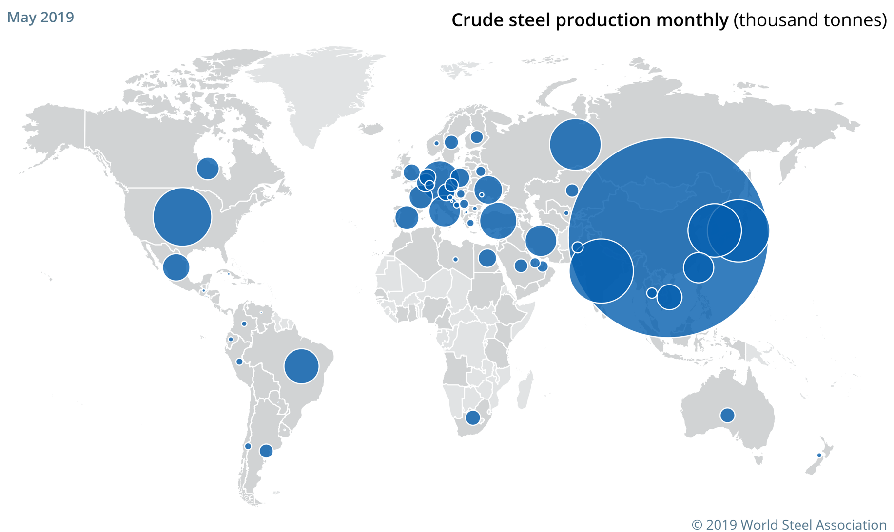 This analysis is based on data made public monthly by the World Steel Association. The WSA is one of the largest industry associations in the world. Members represent approximately 85 percent of the world’s steel production, including over 160 steel producers, national and regional steel industry associations, and steel research institutes.